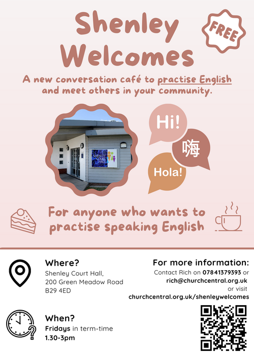 Shenley Welcomes is a conversation café in the Shenley area of Selly Oak.
